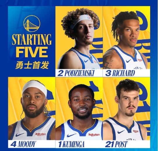勇士:理查德、库明加、穆迪、波杰姆斯基、波斯特