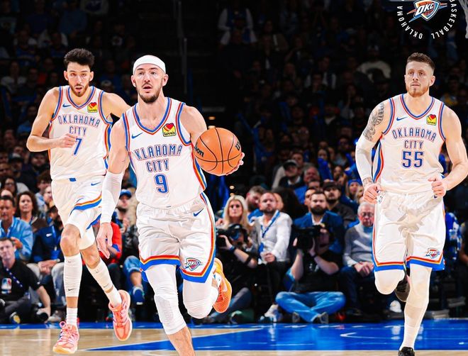 北京时间11月13日,NBA常规赛迎来焦点大战,雷霆主场对阵湖人。此前雷霆战绩11胜1负,高居西部第一,也是联盟第一。在球队缺兵少将的情况下,亚历山大带队打出百回合+14.0的效率值,此外球队场均控制失分108.2分,防守效率105.4也都是联盟第一!我们在凌晨的文章中也分析了,当亚历山大不在场时,雷霆替补阵容百回合净效率值依旧高达+10.5,放在全联盟,也是第三的存在(仅次于雷霆全队整体和掘金),所以常规赛对他们没太大压力。还有一组数据,雷霆本赛季场均抢断10.6次,利用对手失误得分24.3分,也都是联盟第一。