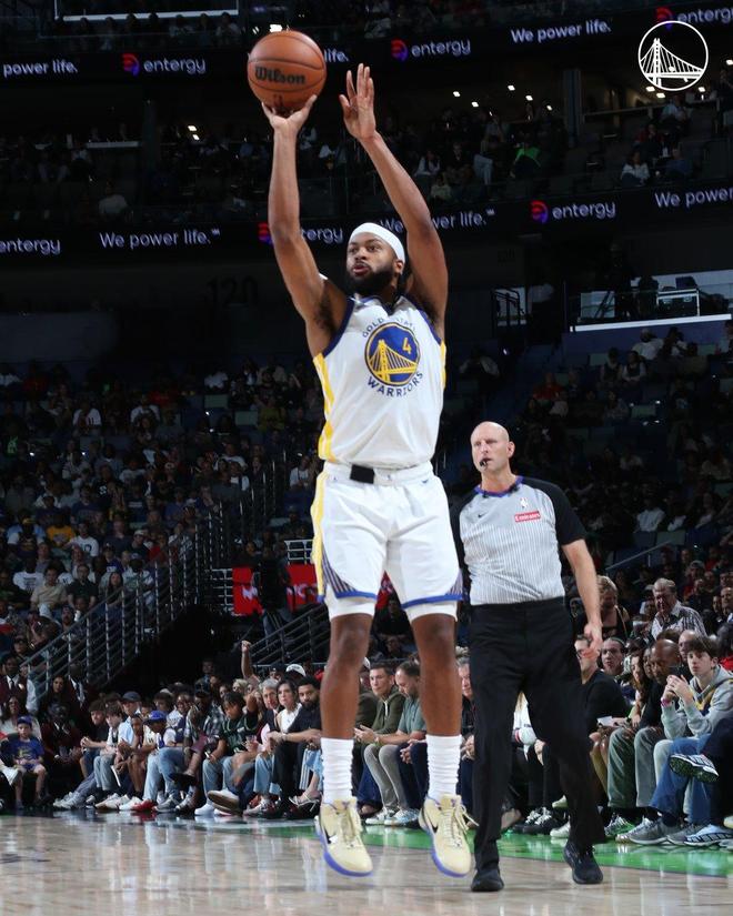 勇士队悍将穆迪,在此役强势暴走。穆迪上场33分钟,16投10中,三分12中8,罚球5中4,狂轰32分4篮板3抢断1盖帽的全能数据。穆迪以63%的超高命中率,轰下了全场的最高分。并且,穆迪还以67%的命中率投进了全场最多的8记三分球。篮板球保护方面,穆迪也有着稳定的输出。作为此役的抢断王,穆迪在防守端的表现也很强势。此役,穆迪的正负值还是全场第二高的+22。穆迪在攻防两端爆发,率队狂下三分雨,就此主导了比赛的走势。