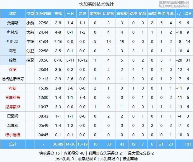 下半场开打,快船这边除了哈登之外依旧别无他法,魔术始终控制场面局势,分差长时间在20分左右徘徊,三节打完哈登砍下31分5篮板8助攻球队却落后17分,第四节快船轮换阵容作战始终无法缩小分差,哈登再也没有登场,最终全场时间打完快船客场101-129惨败魔术!如今的快船要进攻没进攻,要防守没防守,要拼劲没拼劲,赶紧解散重建吧!