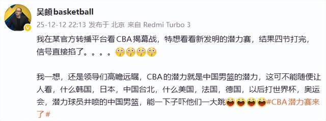 不得不说,媒体人真是太有意思了,明明都不满意,还都不好意思说出来。就这样的潜力赛,直接取消就完事了,真的不是人民想要看到的比赛,没有意思,没有价值,没有意义,何必在人家都下班的模式下,还要人家再上来加班呢?