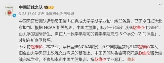 今夏赵维伦本来也有机会跟随中国男篮出战亚洲杯,无奈因学业问题错过了如此绝佳的考察窗口期,所以他的国家队未来和NCAA生涯一样扑朔迷离,至少不像王俊杰那般明朗,其出生于2005年9月8日,刚满20岁没多久。
