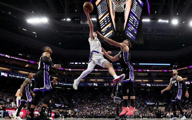 NBA常规赛西部焦点战,国王坐镇主场迎战湖人队,本场比赛之前,两队战绩都为1胜1负。湖人上来就遇到一个坏消息,东契奇在之前的比赛中遭遇左手指扭伤,以及左小腿挫伤,将至少缺席一周的比赛,这场自然也不会出战。前两场比赛,东契奇场均可以得到46分11.5篮板8.5助攻,数据可谓相当炸裂;缺乏东契奇和老詹的湖人队,想赢球估计会有些困难,因为他们本来就缺乏自主进攻得分点,现在基本靠里夫斯一个人持球进攻了。
