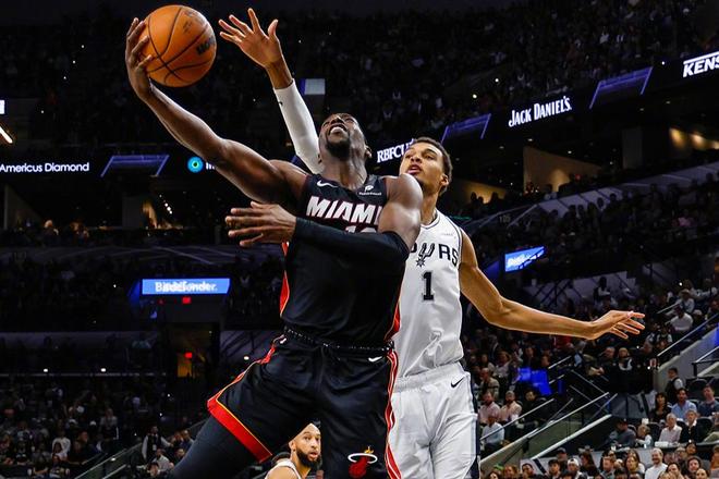 而阿德巴约的出色发挥,也是帮助热火队成功限制住了文班亚马,后者今天面对热火的联防,手感确实一般。主场作战的马刺队,一度陷入低谷。可即便手感不佳,文班亚马依旧能够靠着顶级的个人天赋,在场上做出影响力。可以这么说,和他搭档的后卫,只要能把球扔到上空,文班亚马就有办法将球放到篮筐中!给文班亚马送空中接力这件事,就好比让鲍尔默交罚款,除了轻松想不出第二个词汇。不过阿德巴约确实是让文班亚马打得很难受,还有状元威金斯,在内线也能顶着文班亚马上篮。半场下来,文班亚马竟然没有1次封盖!看起来,热火队是帮助全联盟找出了针对文班亚马的方法?