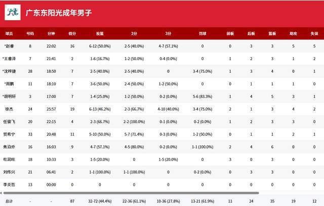 从数据来看,广东队取胜完全是意料之中的,只是过程略有曲折。全队11人登场,人人都有得分入账,3人得分上双,赵睿12投6中,拿到16分3篮板5助攻5失误,徐杰13投9中,拿到19分3篮板4助攻,贺希宁10投5中,拿到11分2助攻。胡明轩4投1中,只拿到7分5篮板3助攻,王睿泽6投1中,拿到2分3篮板。