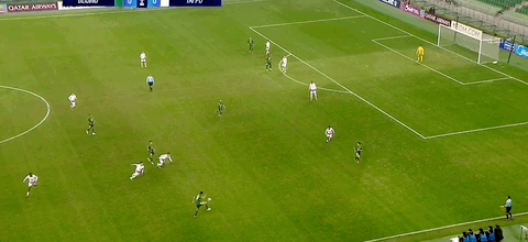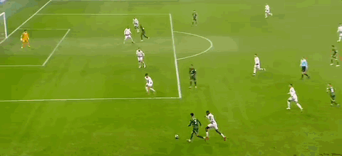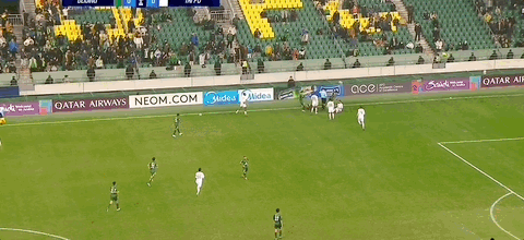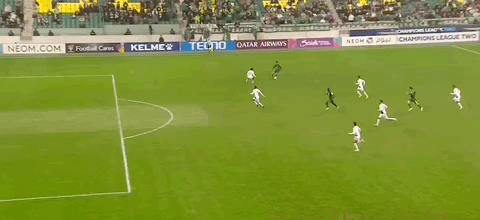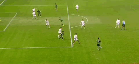 第11分钟,王刚传中法比奥背身拿球后挑传身后,张玉宁没有跟上