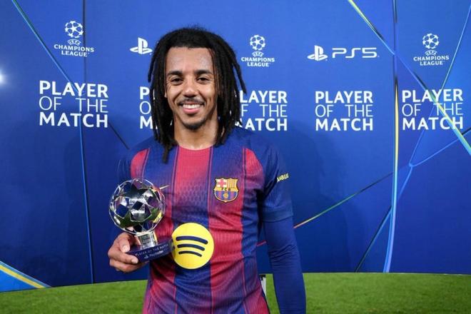 欧冠联赛阶段第6轮,巴塞罗那主场2-1逆转击败法兰克福,此役上演梅开二度的巴萨后卫孔德毫无悬念地当选欧冠官方全场最佳球员。