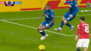 上半场补时,曼联任意球机会,伯恩茅斯球员有明显的手球,裁判却再次没有表示,只是判罚了角球。
