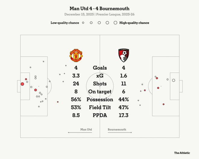 随后,这场比赛又看似会成为一场历史性的胜利,布鲁诺·费尔南德斯和库尼亚在129秒内连进两球,不仅保住了那项维持41年的纪录,还给伯恩茅斯回敬了当头一棒,阻止了他们在这座球场三年内取得三连胜的机会。