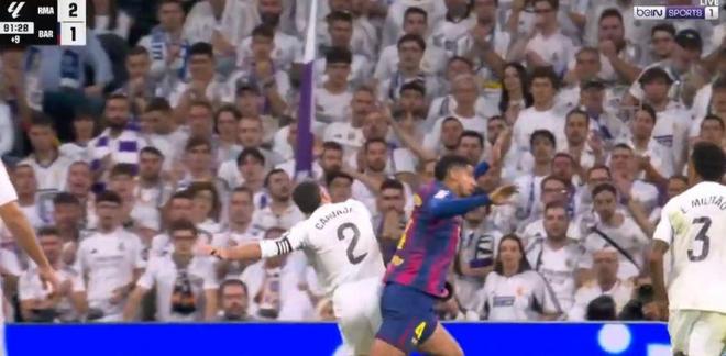 慢镜头回放显示,卡瓦哈尔在争抢过程中完全没有意图触球,而是专注于推搡阿劳霍,以阻止这位巴萨球员完成射门。裁判分析专家塞萨尔-巴伦切亚-蒙特罗毫不含糊地指出:“这是明显的点球,因为卡瓦哈尔从未试图争抢球权,而是直接冲撞对手。”