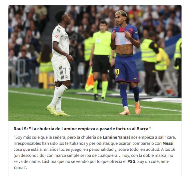 维尼修斯的一系列举动引发了皇马球迷的强烈不满。马尔科-阿森西表示,“如果亚马尔能够在球场上证明自己的价值,那么他可以成为足球界的榜样,而不是像维尼修斯那样,成了被宠坏的孩子。”