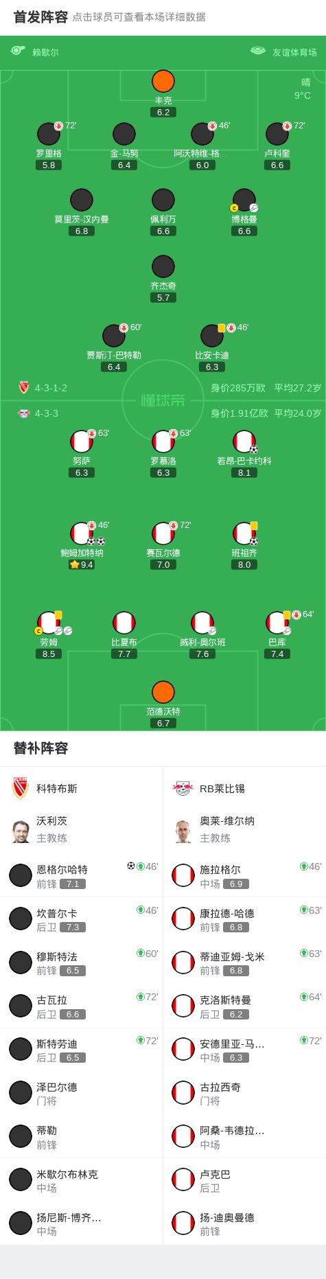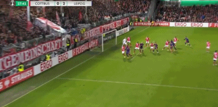 第28分钟,劳姆角球开出,鲍姆加特纳头球破门,莱比锡2-0科特布斯
