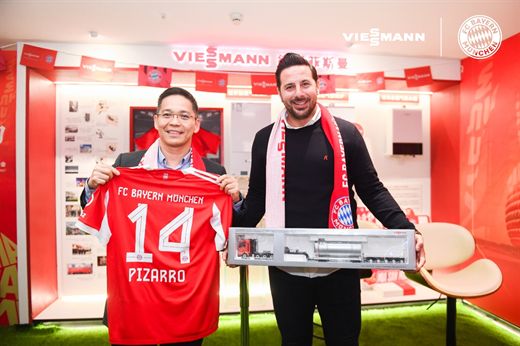 郭振华还与现场来宾及球迷分享了一个标志性案例:19台菲斯曼新一代可再生能源商用热泵最近正在陆续进驻位于德国慕尼黑的拜仁主场安联足球场。这一项目将为安联球场向“全球最绿色足球殿堂”目标迈进提供关键助力。 借此可以看到,菲斯曼面向未来的清洁能源气候解决方案及其产品创新实力,与拜仁慕尼黑在俱乐部的软硬件可持续发展理念上志同道合,展现出菲斯曼在环保能源技术探索与产品研发中的巨大潜力。