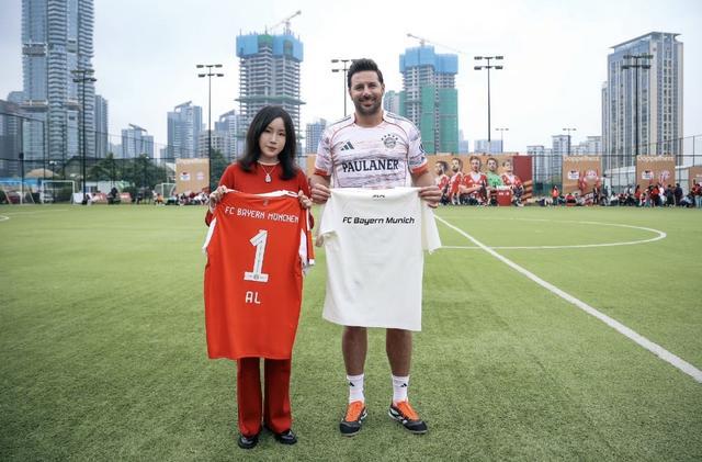 AL晒和拜仁跨界联动:老板菲菲和拜仁名宿皮萨罗交换队服